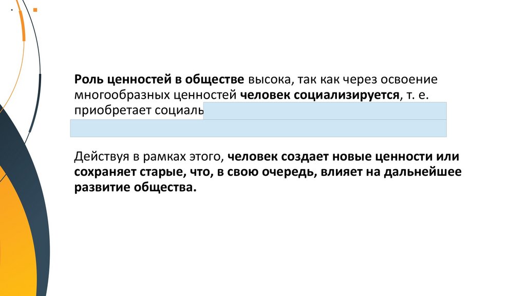 Роль ценностей в обществе высока, так как через освоениемногообразных ценностей человек социализируется, т. е.