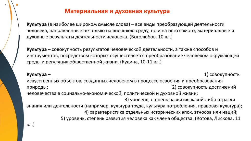 Материальная и духовная культура. Формы