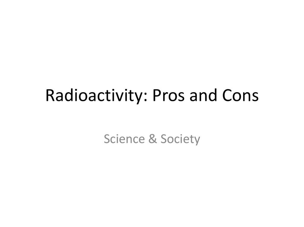 Radioactivity: Pros and Cons Science & Society