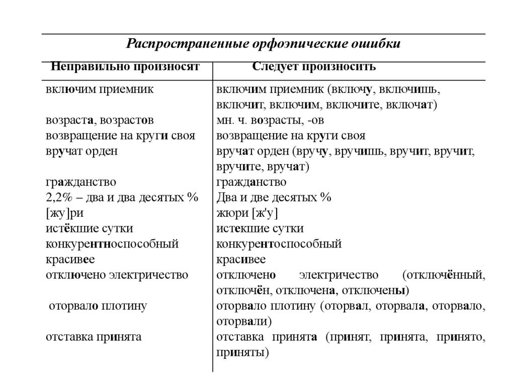 Распространенные орфоэпические ошибкиНеправильно произносят