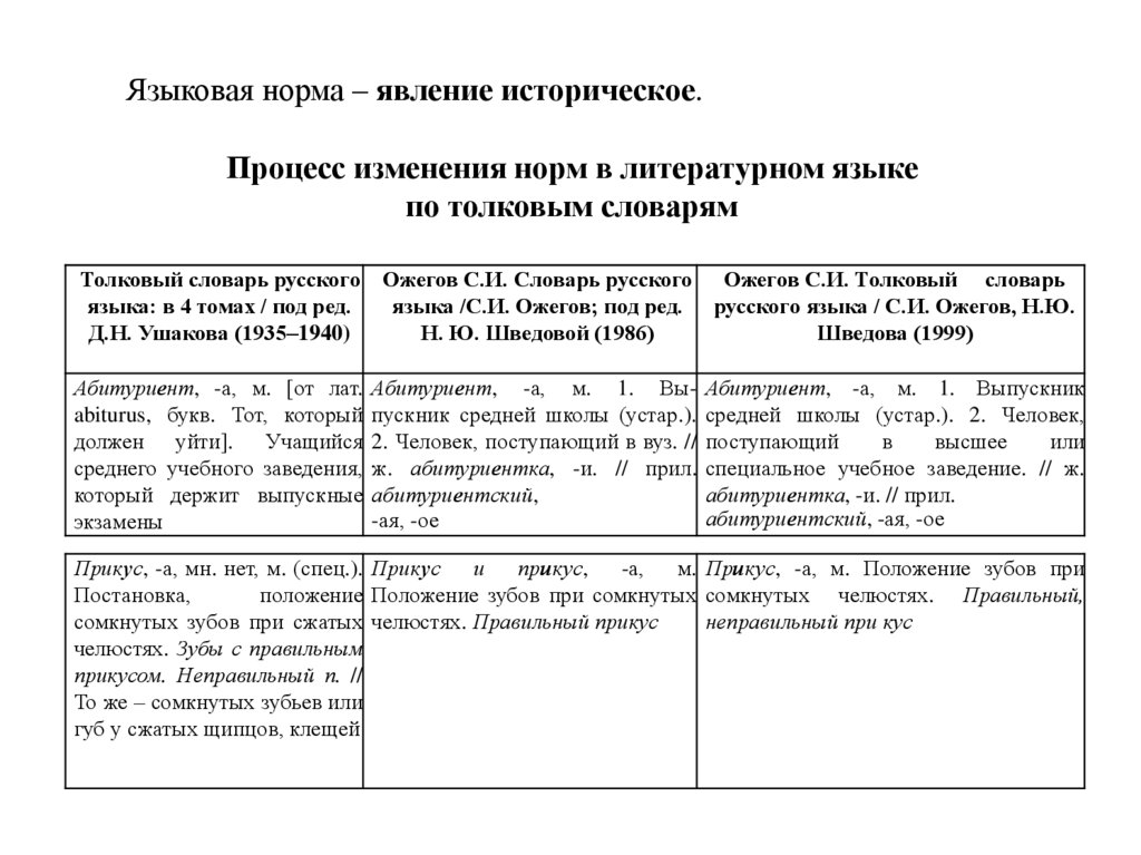 Языковая норма – явление историческое.Процесс изменения норм в литературном языке