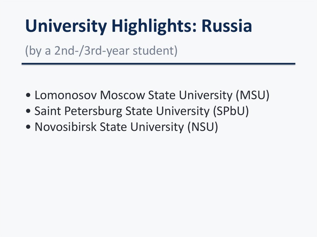 University Highlights: Russia(by a 2nd-/3rd-year student)