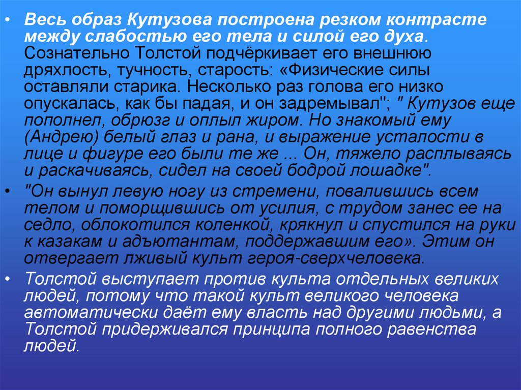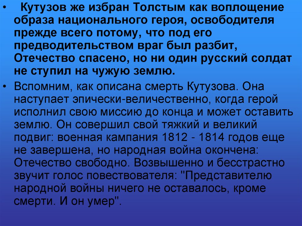 Кутузов же избран Толстым как воплощение