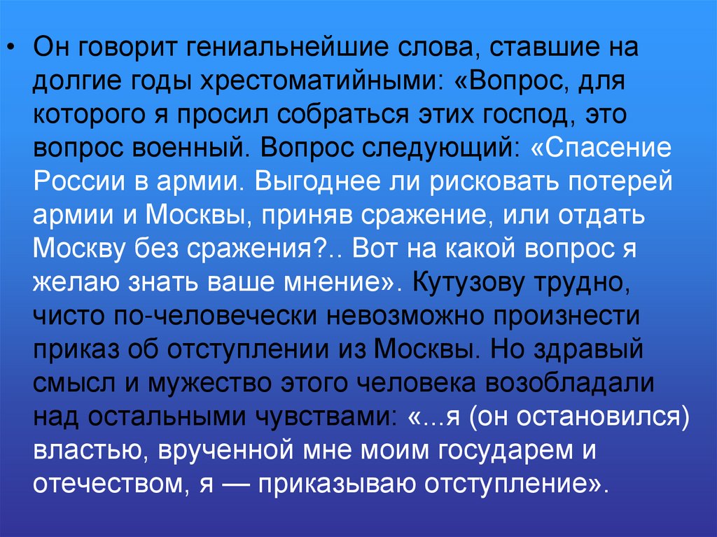 которая отличала Кутузова.
