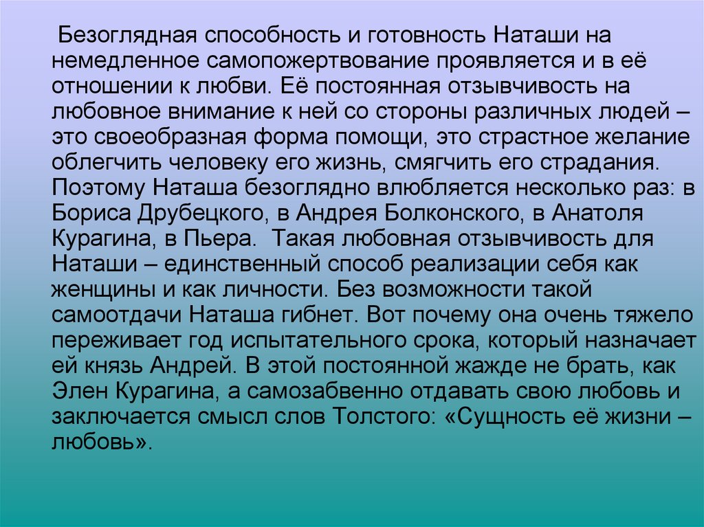 самоотдачи Наташа гибнет. Вот почему она очень тяжело