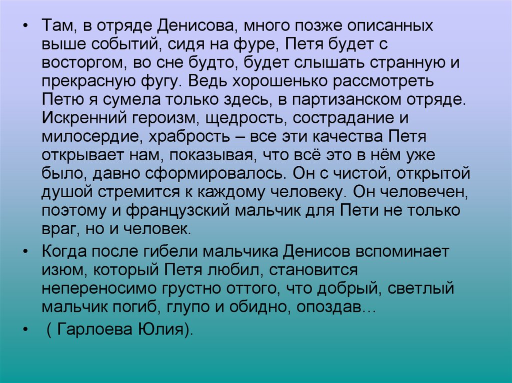 Эпизод «Петя Ростов в партизанском отряде» (т. 4, ч. 3, гл. 7, 11)