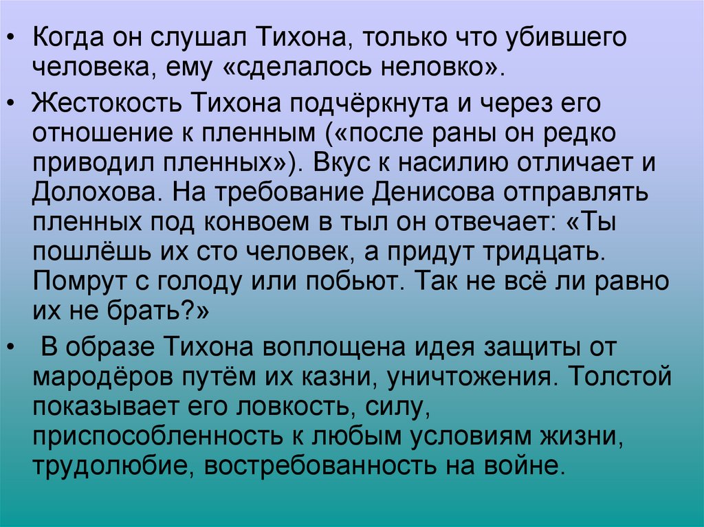 всему; отношение к Денисову и Долохову; сцена в разведке