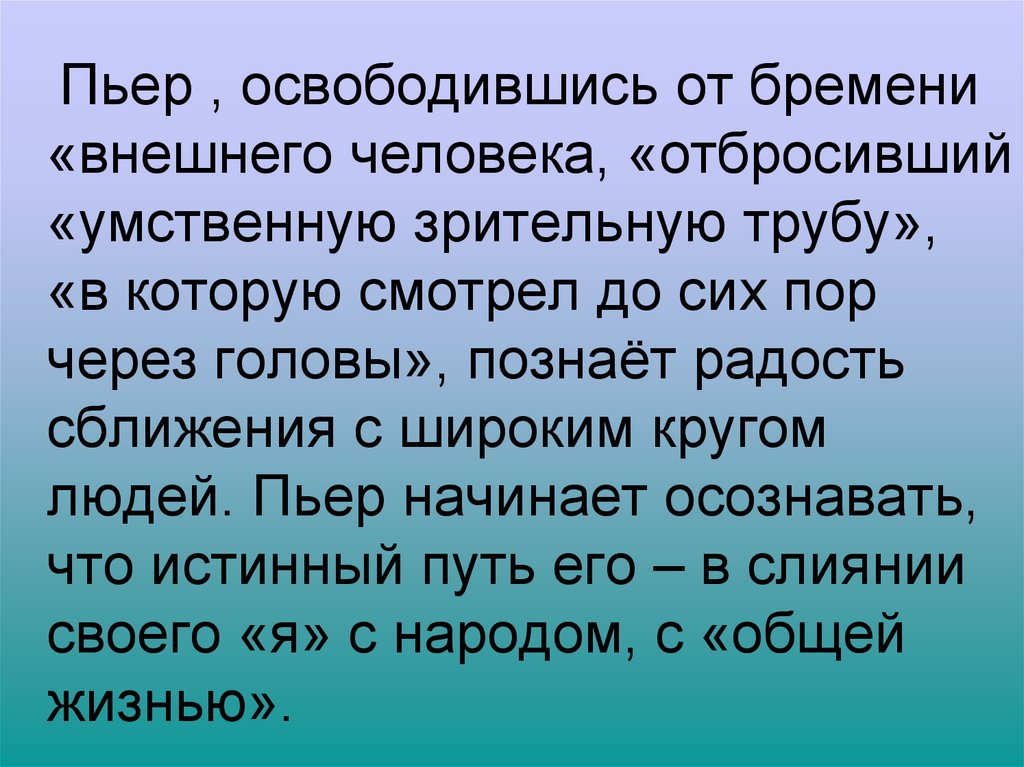 9. В чём нашёл смысл жизни Пьер Безухов?