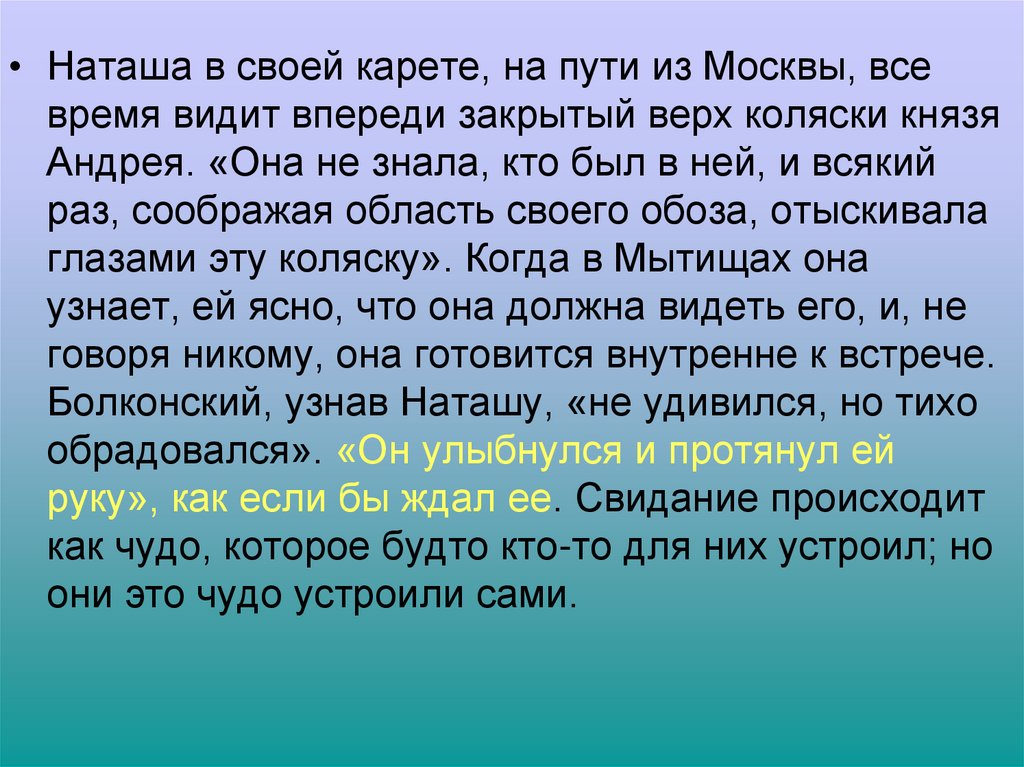 сестру Наташу, отдающую подводы раненым, на Николая Ростова,