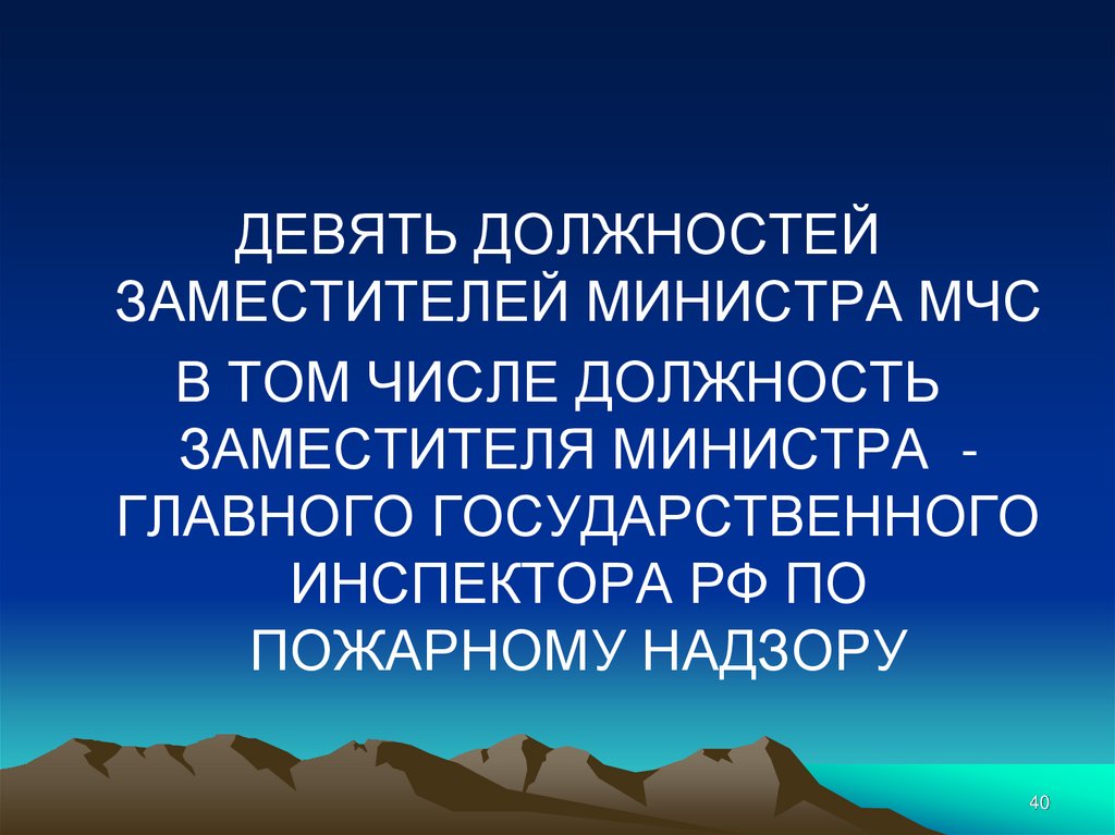 ДЕВЯТЬ ДОЛЖНОСТЕЙЗАМЕСТИТЕЛЕЙ МИНИСТРА МЧС