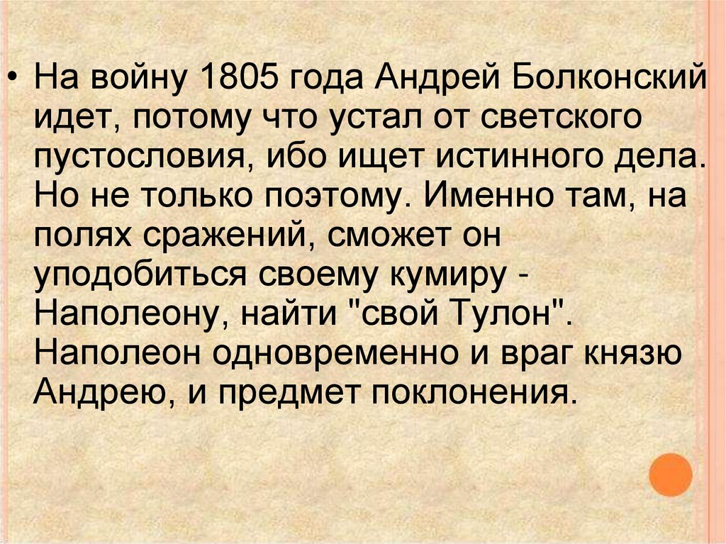 • На войну 1805 года Андрей Болконскийидет, потому что устал от светского