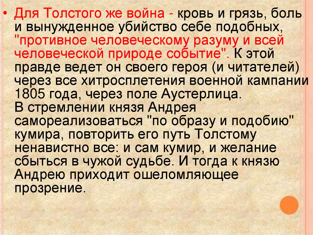 • Для Толстого же война - кровь и грязь, больи вынужденное убийство себе подобных,