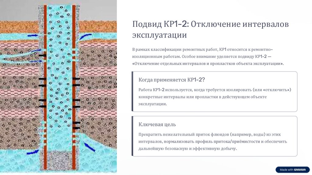 В рамках классификации ремонтных работ, КР1 относится к ремонтноизоляционным работам. Особое внимание уделяется подвиду КР1-2 —
