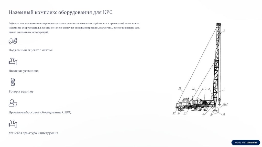 наземного оборудования. Базовый комплекс включает специализированные агрегаты, обеспечивающие весь