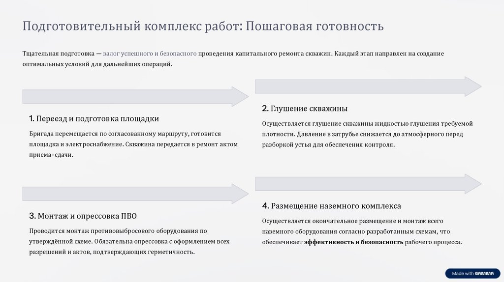 Подготовительный комплекс работ: Пошаговая готовностьТщательная подготовка — залог успешного и безопасного проведения капитального ремонта скважин. Каждый этап направлен на создание