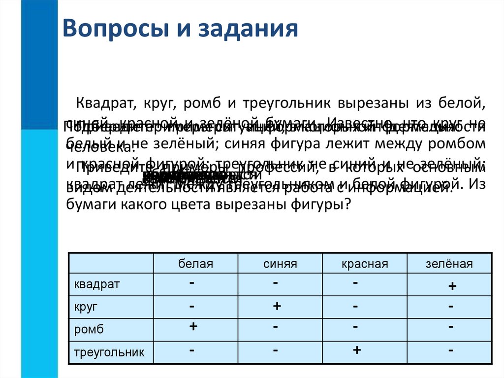 Вопросы и заданияКвадрат, круг, ромб и треугольник вырезаны из белой,
