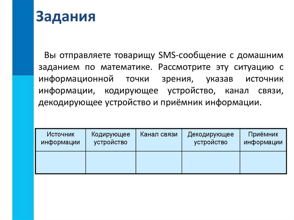 ЗаданияВы отправляете товарищу SMS-сообщение с домашним