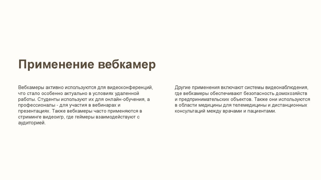 Основные тезисыВебкамеры являются важным инструментом для современного