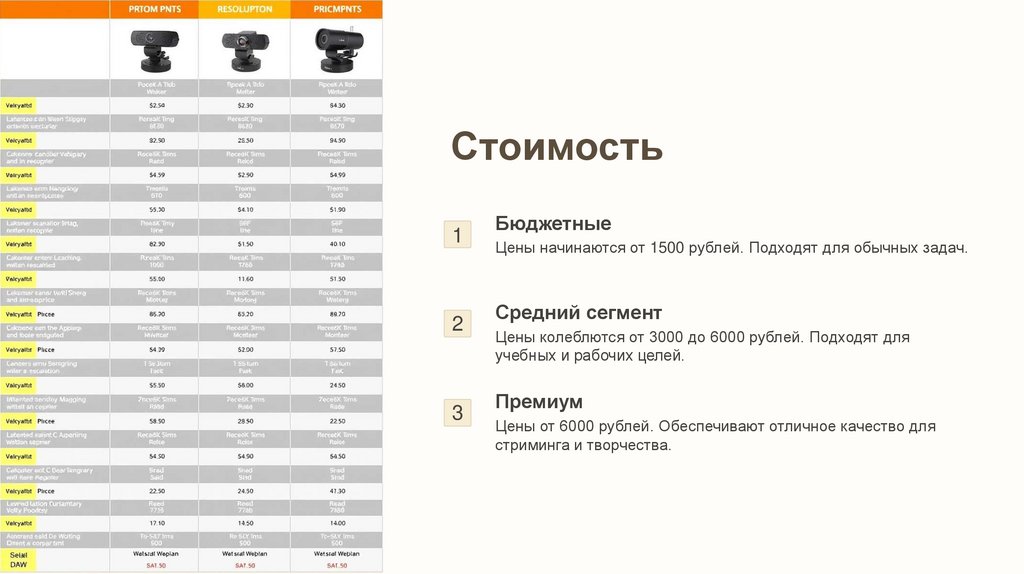 вебкамеру для пользователя. Стоимость варьируется, что дает
