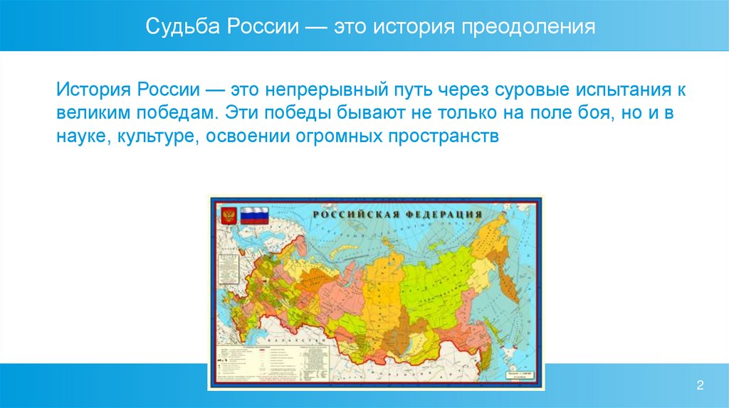 Судьба России — это история преодоленияИстория России — это непрерывный путь через суровые испытания к