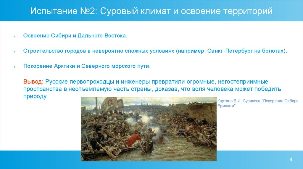 Испытание №2: Суровый климат и освоение территорийОсвоение Сибири и Дальнего Востока.