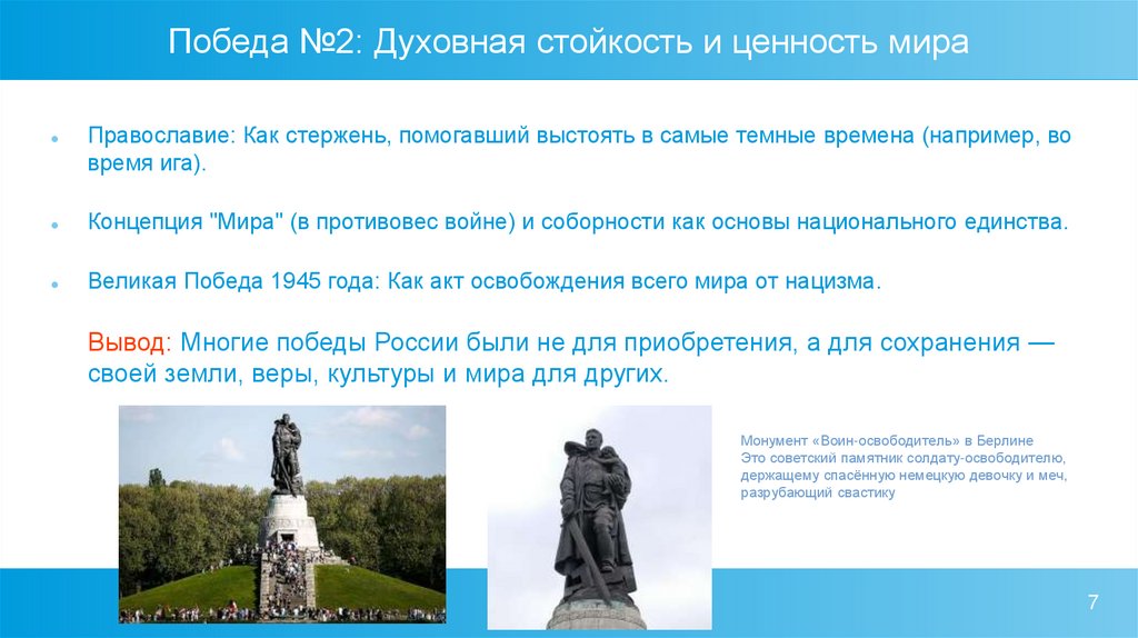 Вывод: Многие победы России были не для приобретения, а для сохранения —