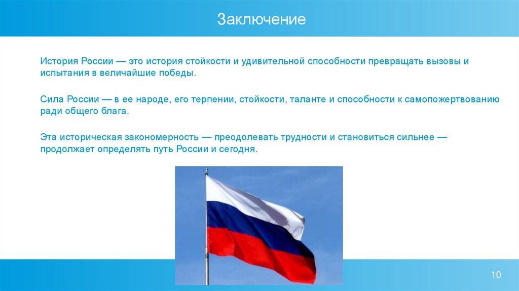 ЗаключениеИстория России — это история стойкости и удивительной способности превращать вызовы и