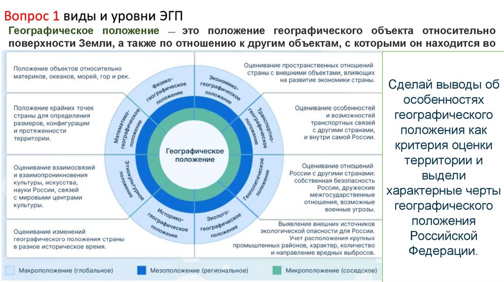 Вопрос 1 виды и уровни ЭГПГеографическое положение — это положение географического объекта относительно