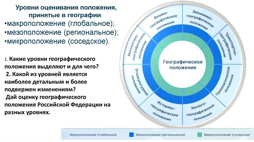 Уровни оценивания положения,принятые в географии: