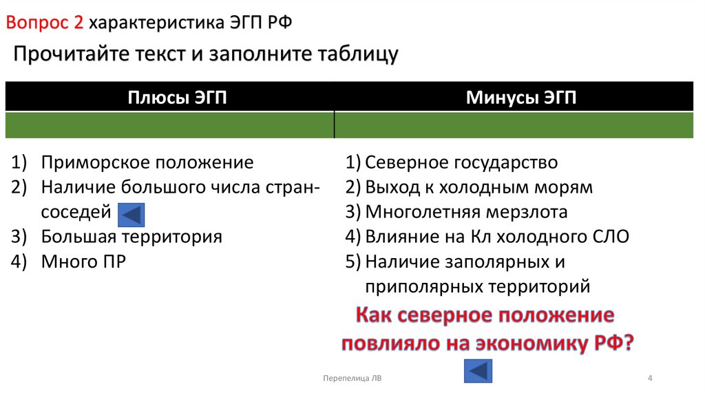 Вопрос 2 характеристика ЭГП РФПрочитайте текст и заполните таблицу