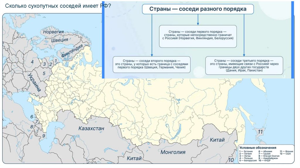 Сколько сухопутных соседей имеет РФ?Перепелица ЛВ