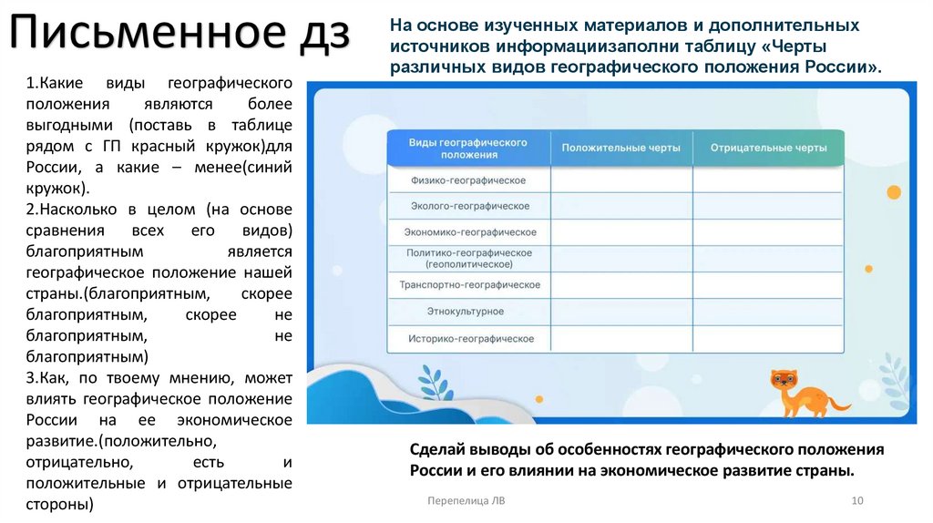 Сделай выводы об особенностях географического положения