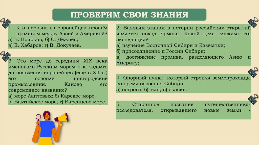 ПРОВЕРИМ СВОИ ЗНАНИЯ1. Кто первым из европейцев прошёл