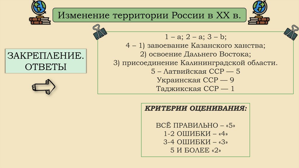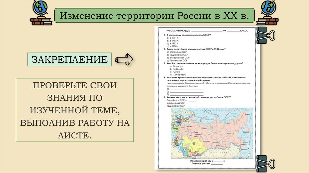 Изменение территории России в XX в.ЗАКРЕПЛЕНИЕ