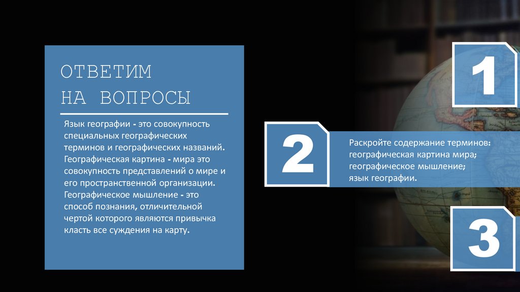географическая картина мира, географическое мышление и язык географии. Географическая