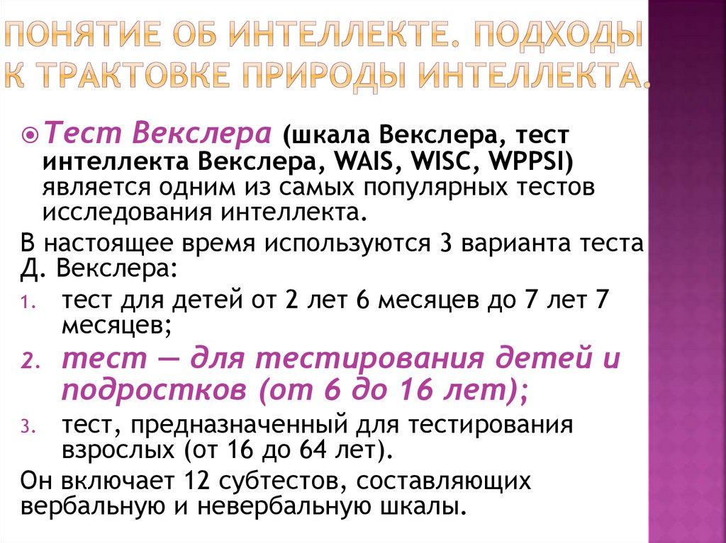 стандартизированные тесты измерения уровня интеллекта не