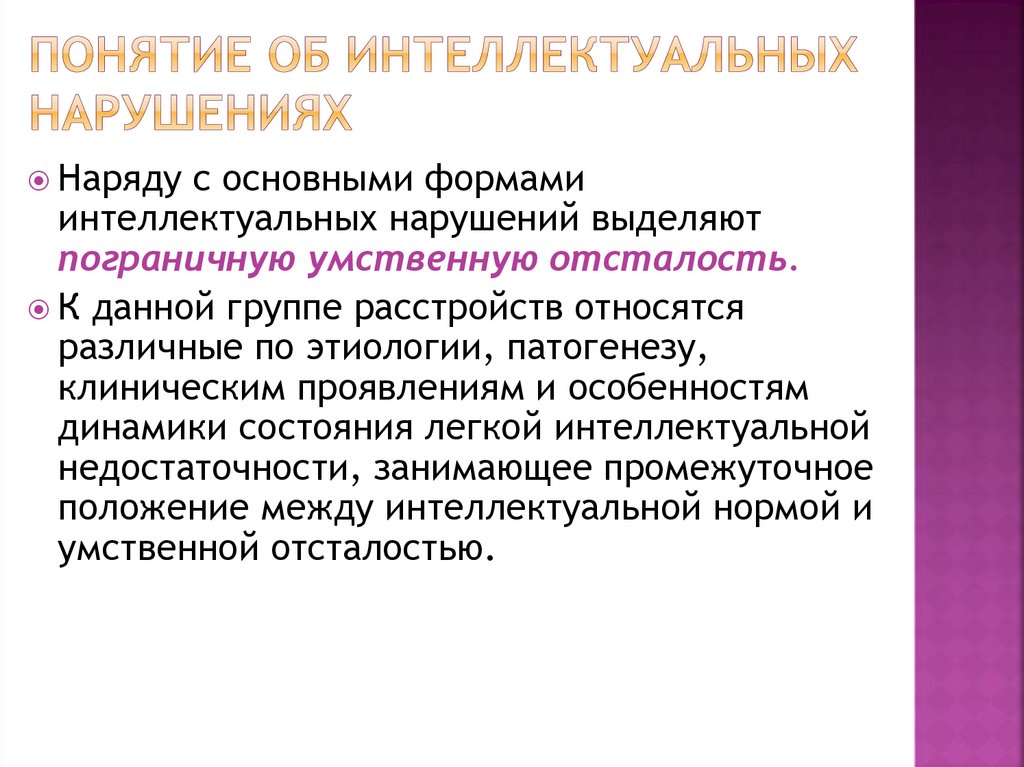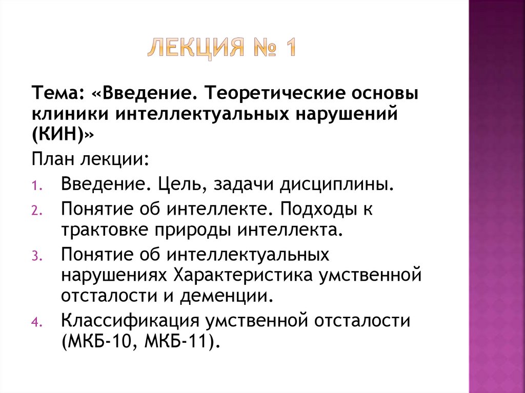 Тема: «Введение. Теоретические основыклиники интеллектуальных нарушений