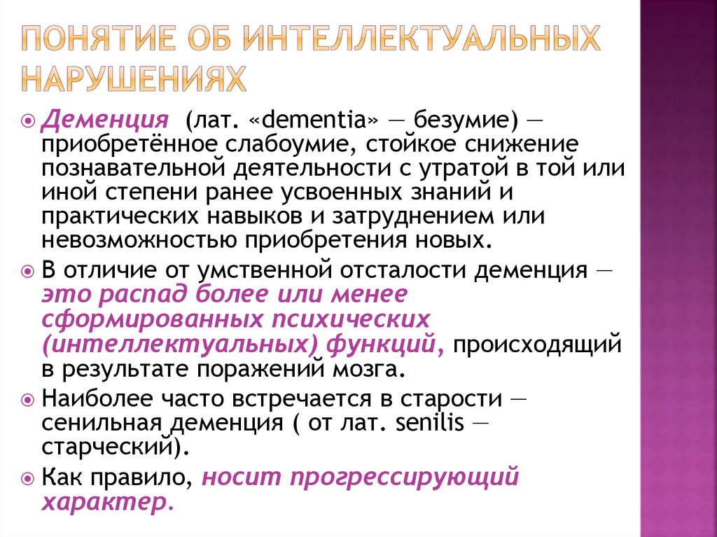 отсталости и деменции.