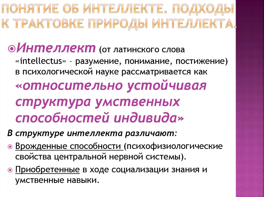 2. Понятие об интеллекте. Подходы к