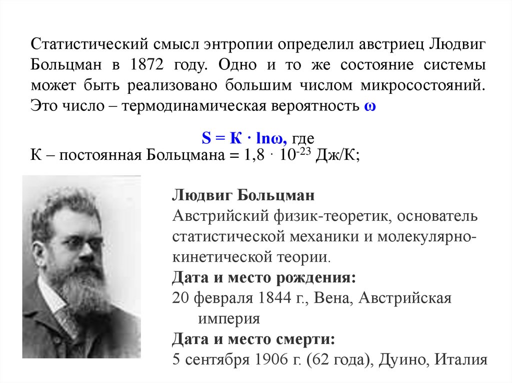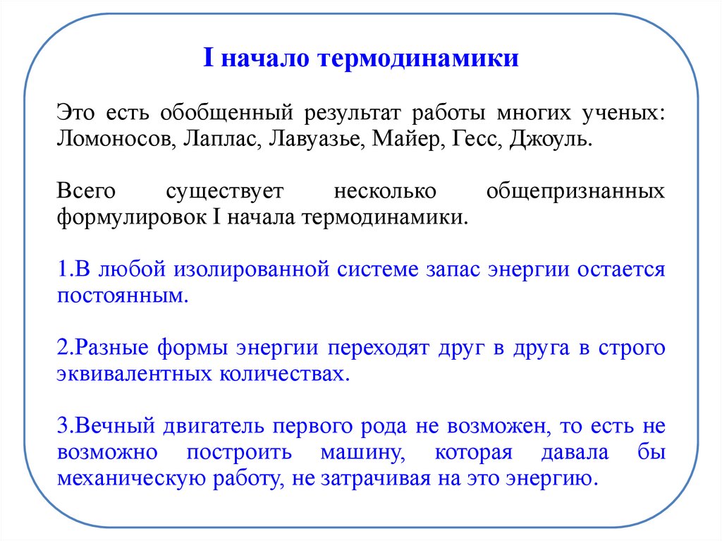 План лекцииОсновные понятия и задачи термодинамики. Энтальпия, энтропия,