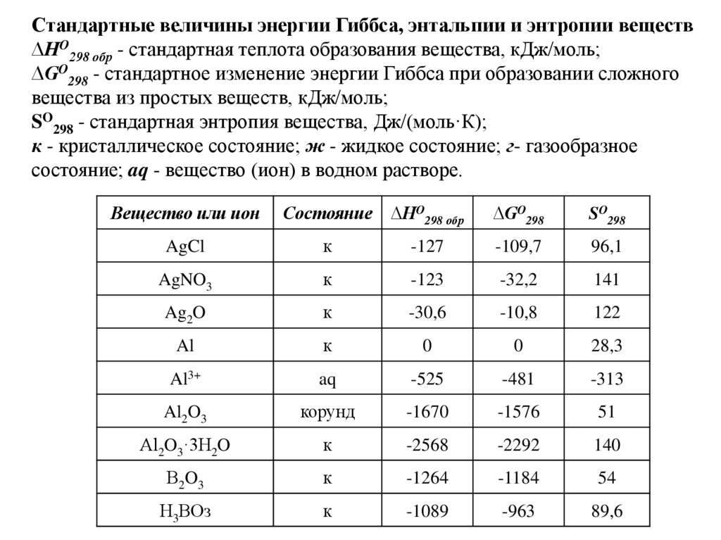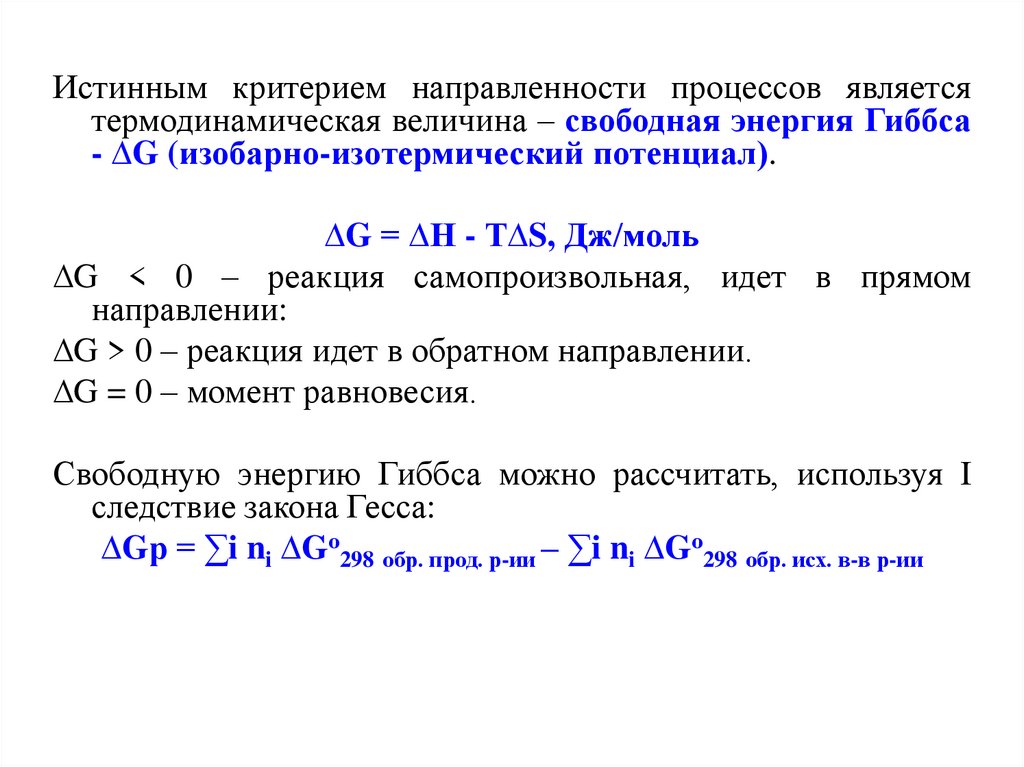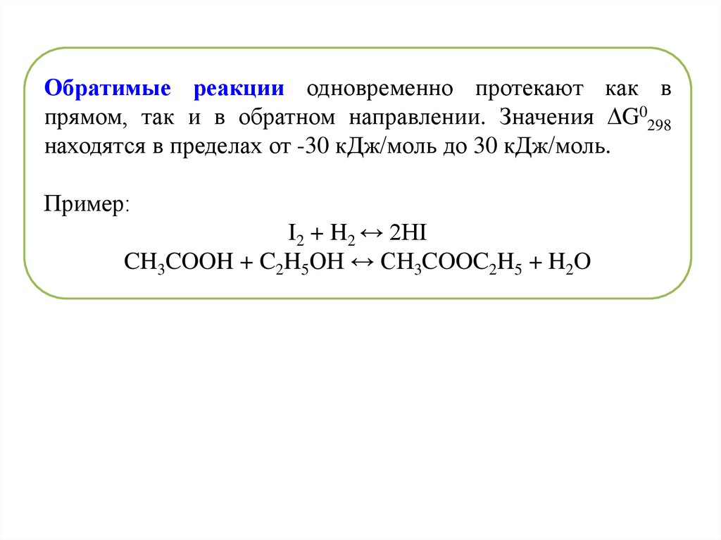 Обратимые реакции одновременно протекают как впрямом, так и в обратном направлении. Значения G0298
