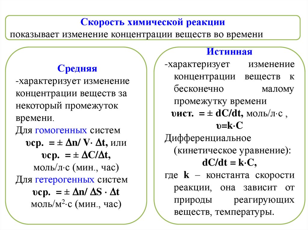 Понятие о скорости химической реакции. Влияние различных