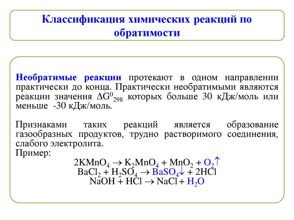 Классификация химических реакций пообратимости