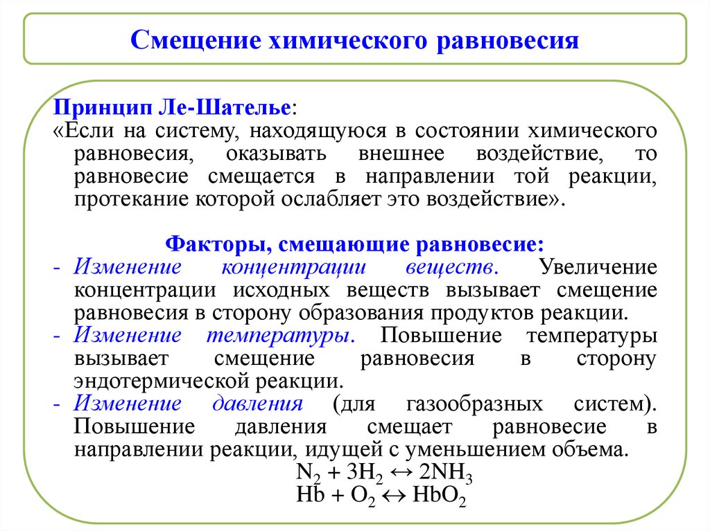 Факторы, смещающие равновесие: