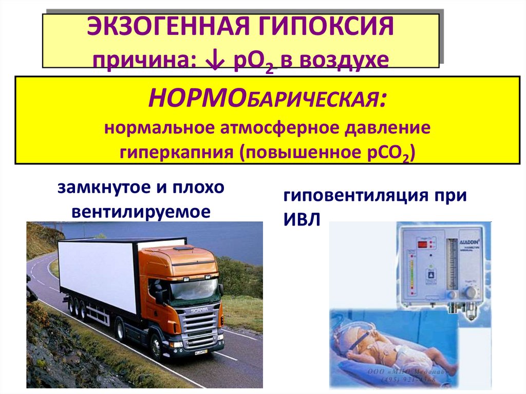 10. Причина экзогенных гипоксий - недостаточное поступление кислорода с вдыхаемым воздухом, например, в небольшом замкнутом