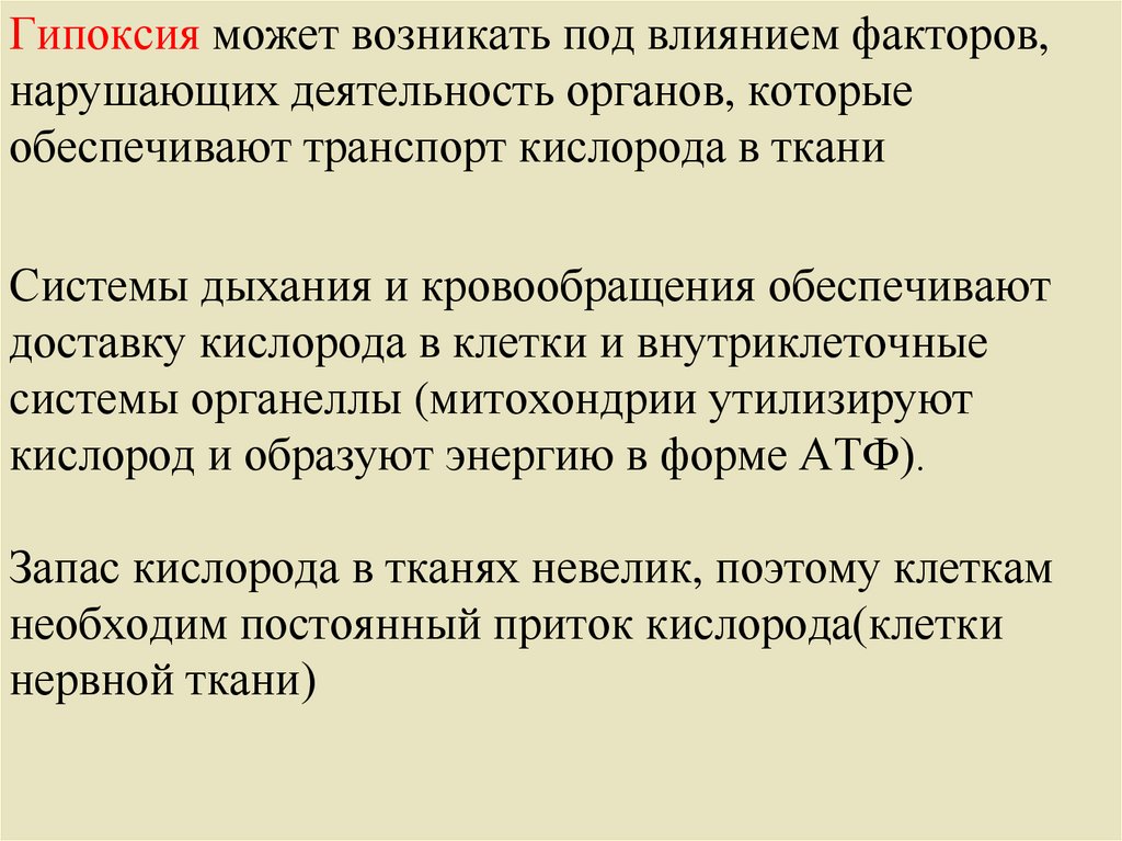 Гипоксия может возникать под влиянием факторов,нарушающих деятельность органов, которые
