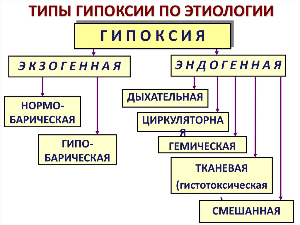 ТИПЫ ГИПОКСИИ ПО ЭТИОЛОГИИГИПОКСИЯ