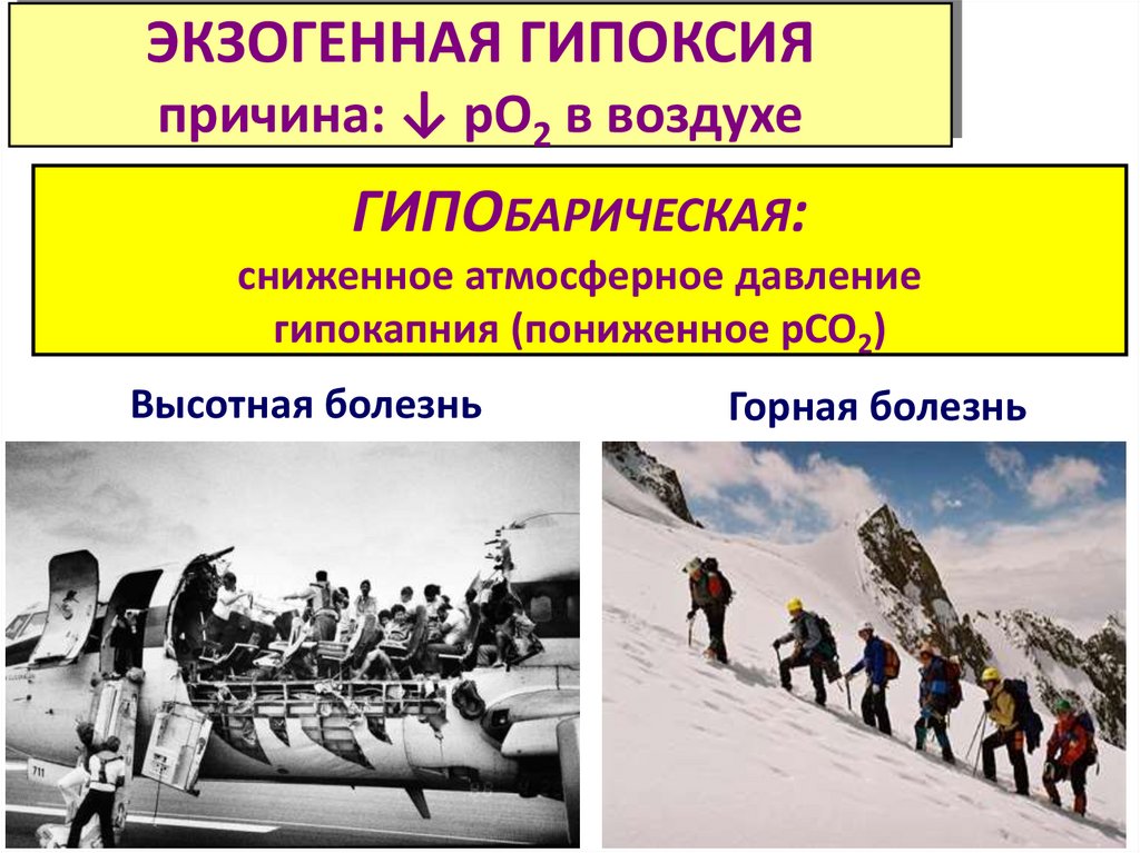 ЭКЗОГЕННАЯ ГИПОКСИЯпричина: ↓ рО2 в воздухе