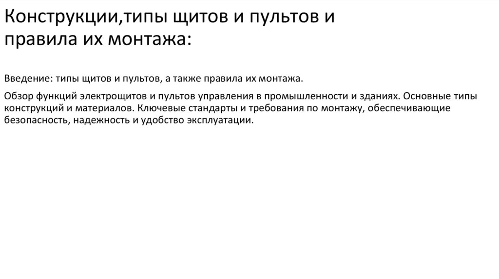 Введение: типы щитов и пультов, а также правила их монтажа.