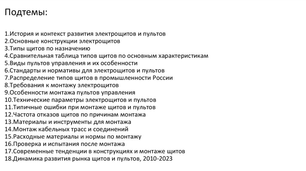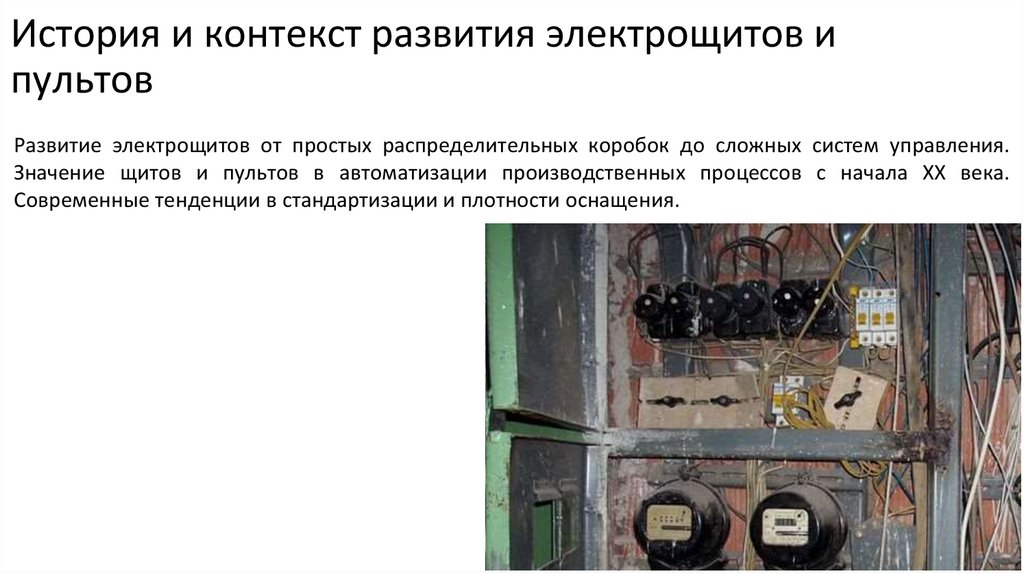 Подтемы:1.История и контекст развития электрощитов и пультов